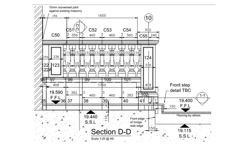 Following our survey work, we prepare CAD drawings for approval. (This information is also used for accurate manufacture of stone components in our Production process).