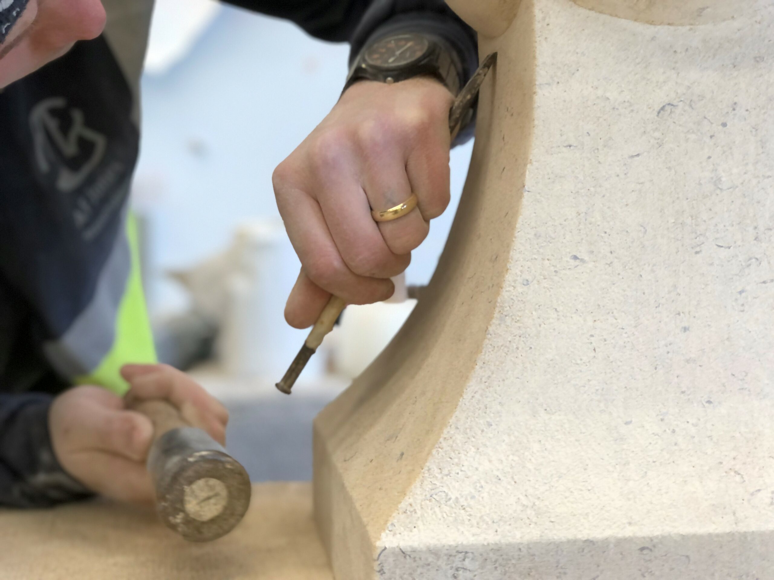A skilled, trained stonemasonry team can improve efficiency as well as create the higher quality finishes typical of a motivated and committed craftsman and across the industry it remains vital to continue to take on apprentices alongside experienced masons. At any one time, AF Jones has between 1-3 apprentices, with all our masons becoming fully trained to NVQ 2 and NVQ 3 standards.