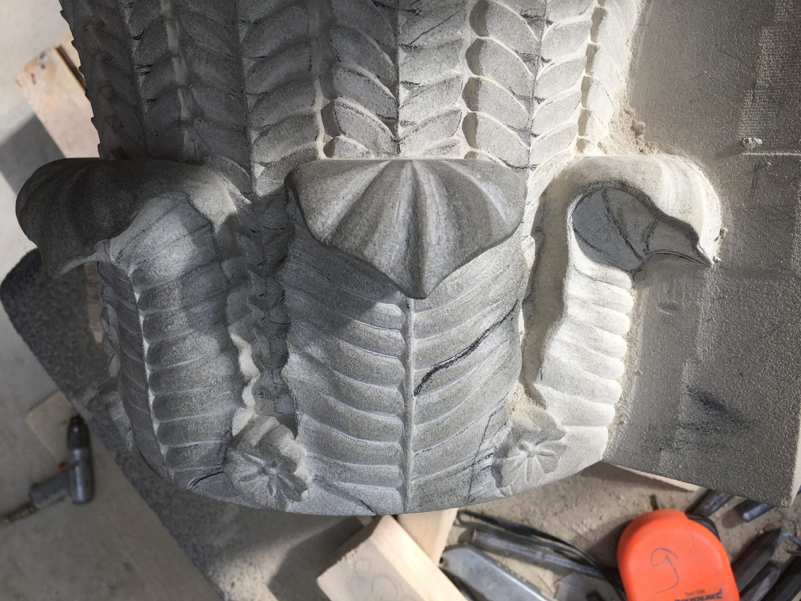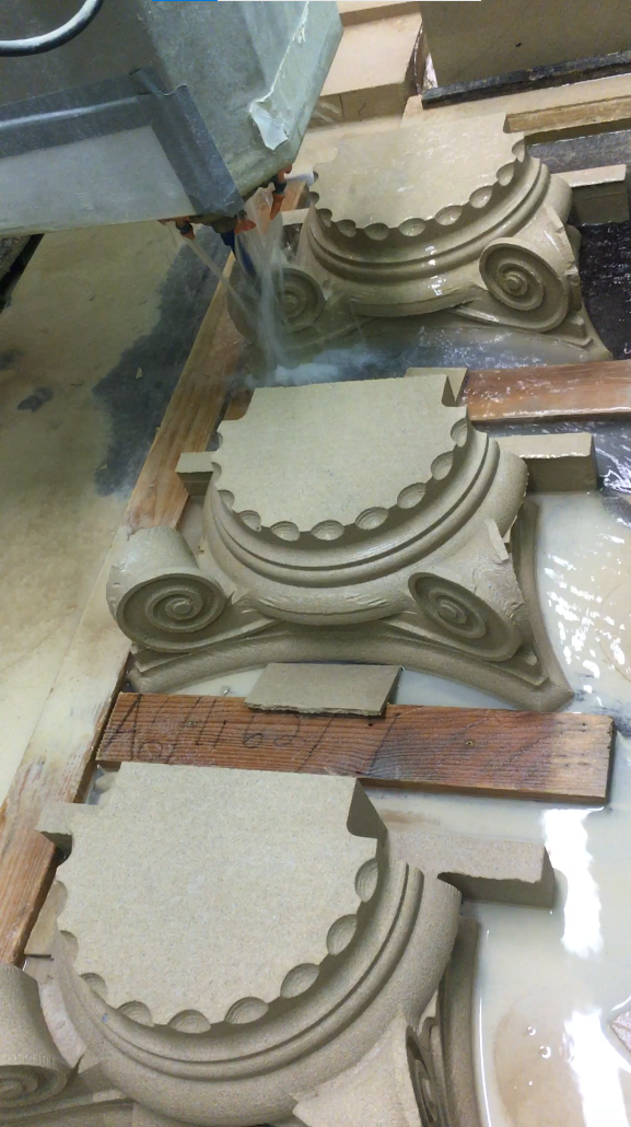 The images here show our CNC router cutting a set of three capitals whilst the remaining images show a hand-worked capital and finished decorative columns on the Belvedere in Harpsden. The capitals for the Belvedere were part of the award-winning submission for Craftsmanship at the 2020 Natural Stone Awards with much of the stone worked by hand. The Corinthian and Tuscan capitals were carved in Woodkirk stone, a tight dense English sandstone known for its ability to retain fine carved edges.
